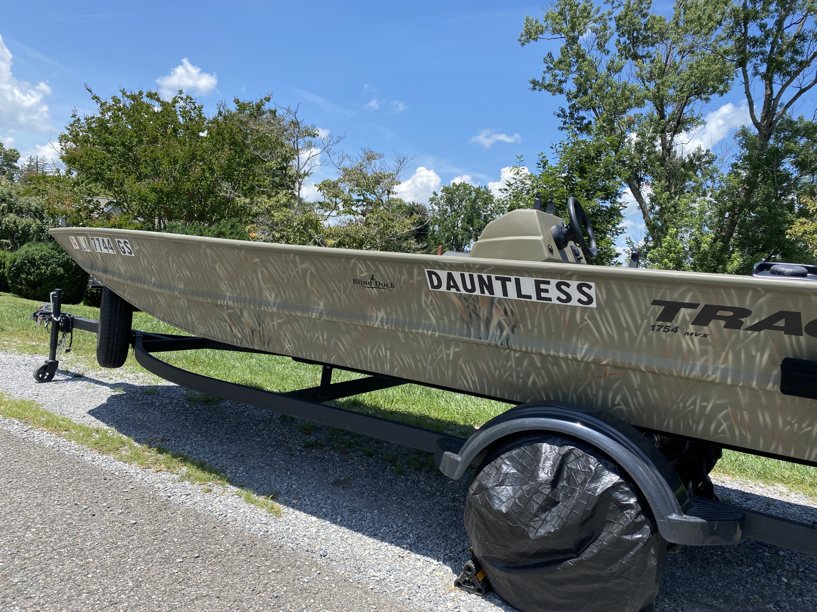 3-20-25. I obtained a Tracker Grizzly 1754 that will be useful for exploring remote areas in rivers with appropriate habitats for Ivory-billed Woodpeckers. With a 9.5 gallon gas tank, this jonboat has a range of over 50 miles. It is capable of speeds well over 30 miles per hour, and it can navigate in water less than a foot deep. Based on the rugged design, I gave it the name Dauntless.